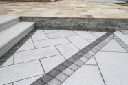 Еще один способ благоустройства дорожек и площадок природным камнем — гранитные плиты мощения. От пиленой брусчатки их отличает только размер — все плиты размером более 200×200 мм предназначенные для укладки на улице можно считать плитами мощения.